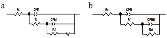 | Sample | Rs (Ω·cm2) | CPEf (Sn·Ω−1·cm−2) | n | Rf (Ω·cm2) | CPEdl (Sn·Ω−1·cm−2) | n | Rct (Ω·cm2) |