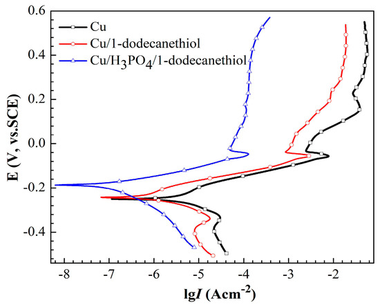 | Cu/H3PO4/1-dodecanethiol SAM | −187 | 48 | −205 | 1.32 × 10−7 | 97.2 |