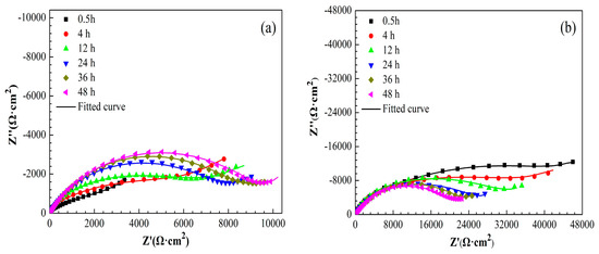 | Sample | Time (h) | Rs (Ω·cm2) | CPEf (Sn·Ω−1·cm−2) | n | Rf (Ω·cm2) | CPEdl (Sn·Ω−1·cm−2) | n | Rct (Ω·cm2) |