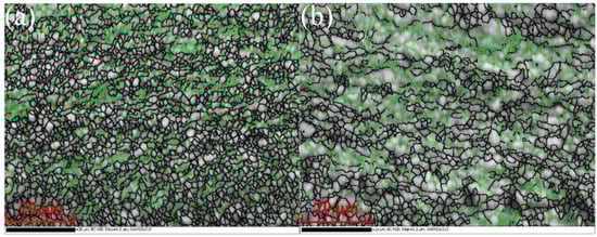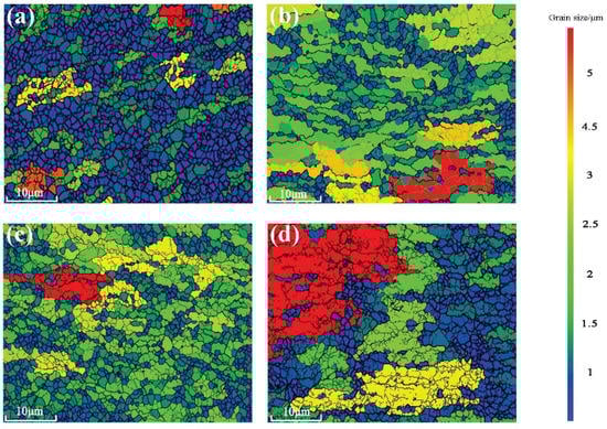 Figure 8. The average grain sizes of Al-6061 alloys processed by MEM-MEM and MEE-MEE were 1.1 μm and 1.4 μm, respectively, according to