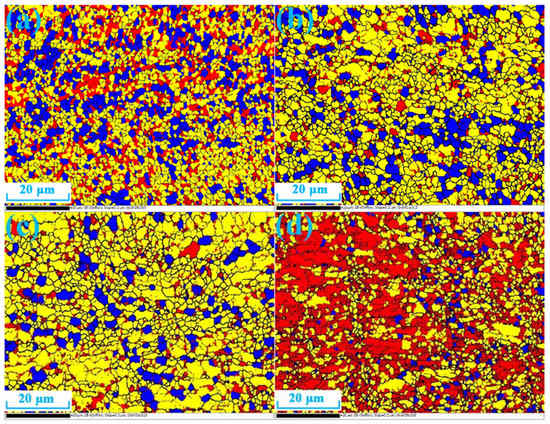 Table 1. All samples were subjected to recrystallization annealing under the same conditions (350 °C for 2 h, heat for 1 h and thermal insulation for 1 h). The annealed samples (10 × 10 × 20 mm