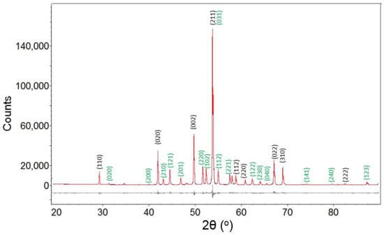 - McCusker, L.B.; Von Dreele, R.B.; Cox, D.E.; Louër, D.; Scardi, P. Rietveld refinement guidelines. J. Appl. Crystallogr. 1999, 32, 36–50. [Google Scholar] [CrossRef]