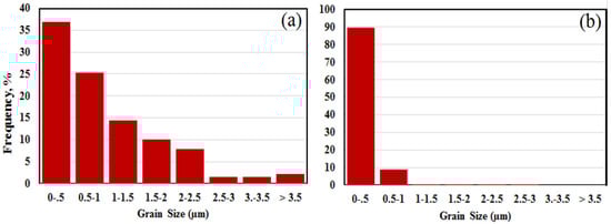 (a,b) Grain size distributions from Run 3 and Run 8, respectively, determined using EBSD data as shown in Figure 5.