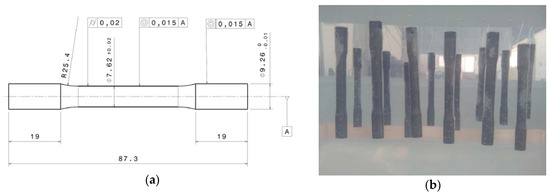Finally, in order to obtain the UTS, both sets underwent a tensile test with a Shimadzu Autograph AG-X (50 kN) tensile-compression machine (Shimadzu, Kyoto, Japan) for a precision within 1%. The crosshead velocity was u = 14.5 mm/min for all tests and the standard ISO 6892-1:2016 was used.