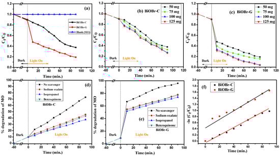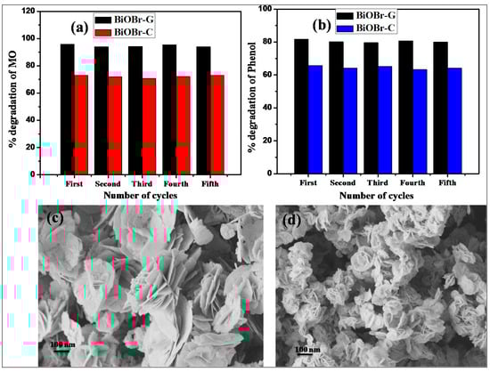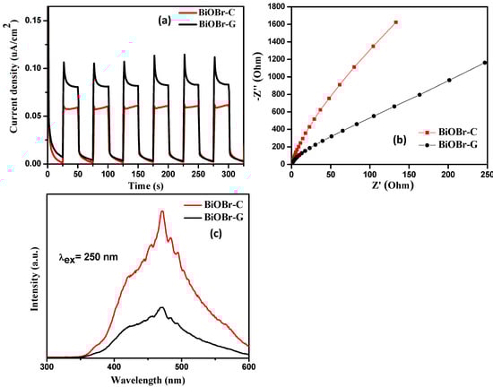 3.7. Photocatalytic Performance of BiOBr-C and BiOBr-G