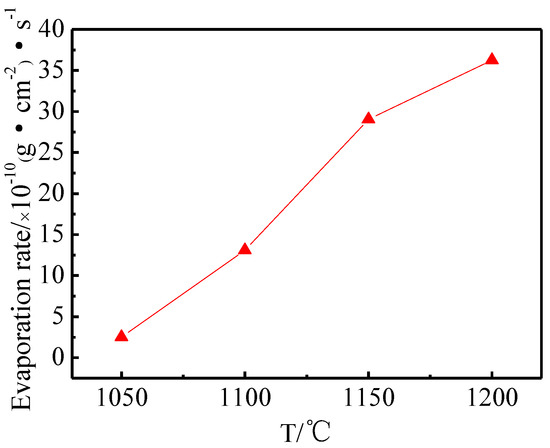Figure 8 shows the evaporation rate of the Ba-W cathode prepared by 6BaO·2CaO·2Al2O3 aluminates at different temperatures. The evaporation rate of the cathode increased with the increase of working temperature [31]. This was because the high temperature could promote the reaction of aluminate with W and thus produced more electron emitters. Therefore, the working temperature should be as low as possible when the current density was satisfied.