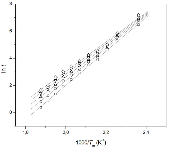 The set of short-term experimental isothermal data was used to evaluate the Ea of our polymers through the MacCallum [30,31] method, based on the following linear equation: