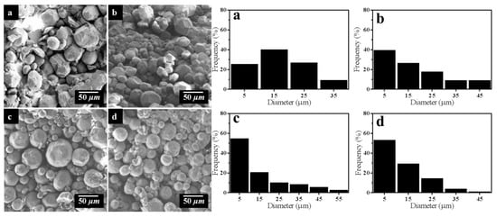 Based on the above analysis, STC-3, STC-5, and STC-8 with typical particle diameter ranges being chosen to study the effect of particle size on antibacterial activity. It can be seen from Figure 7 that the particle diameter ranges STC-3, STC-5 and STC-8 is centered in 1–10 μm, 20–30 μm, and 40–50 μm, respectively.