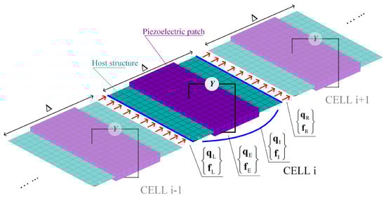 The first step of WFEM is to model one unit cell by finite element method. Any existing FEM package can be used, and in this paper ANSYS 17 is applied to generate the mesh and the required matrices of the unit cell modelling. All the following-up procedures of WFEM, including the solving of the eigenvalue problem, the reduced model, the post-processing are implemented by an in-house Python code developed by the authors. The Python code is validated against the analytical and full finite element method in many applications [30,31,36]. In absence of any external loads, the dynamic equations of a unit cell in the periodic piezoelectric structure write