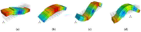 Only l modes are kept in , and the number is less than that of . The criterion for the selection of the retained modes is where is the maximum excitation frequency to be considered. After introducing Equation (13) into Equation (4), the dynamic equations of a unit cell become: