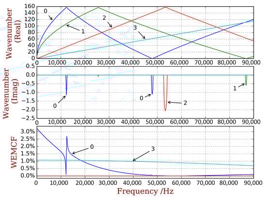 Then the aim of the wave modal analysis is to find associated with and k to satisfy Equations (4), (7) and (8) at the same time.