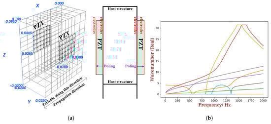 It is widely known that the equivalent stiffness of the piezoelectric materials will be changed when the electrodes are set to the short circuit (SC) or open circuit (OC) statuses. Consequently, a piezoelectric composite will exhibit different dispersion curves in SC and OC statuses [18], as illustrated in Figure 1. This inspires us to use the relative difference of the propagating frequencies of OC and SC statues to define the WEMCF , as: