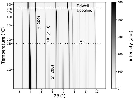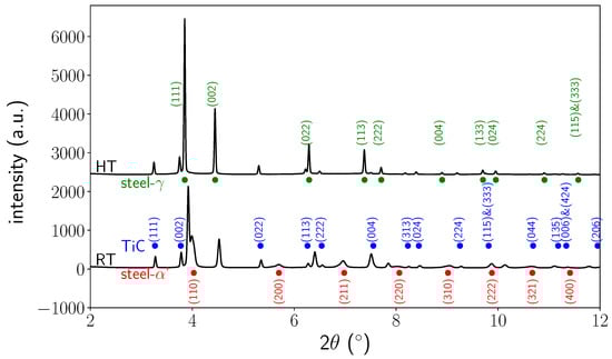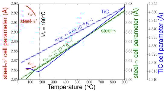 - Winkler, B. In situ observation of the formation of TiC from the elements by neutron diffraction. J. Alloys Compd. 2007, 441, 374–380. [Google Scholar] [CrossRef]