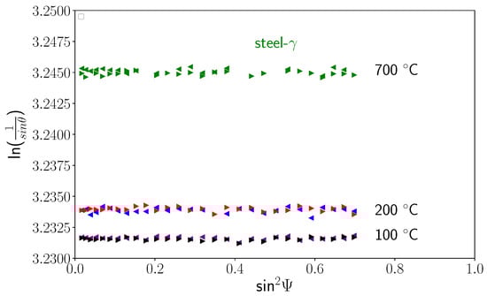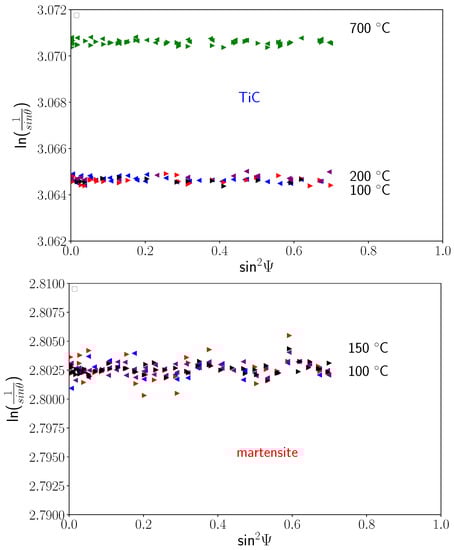 - Dolle, H. The Influence of Multiaxial Stress States, Stress Gradients and Elastic Anisotropy on the Evaluation of (Residual) Stresses by X-rays. J. Appl. Crystallogr. 1979, 12, 489–501. [Google Scholar] [CrossRef]