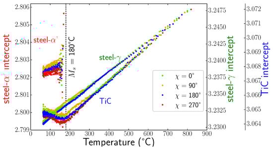 - Roberts, C.S. Effect of carbon on the volume fractions and lattice parameters of retained austenite and martensite. J. Appl. Crystallogr. 1953, 5, 203–204. [Google Scholar] [CrossRef]