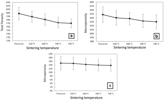 (a) Total porosity measured using Equation (1), (b) macroporosity measured using theopen source scientific image processing program, ImageJ, (c) microporosity calculated by subtracting the macroporosity from the total porosity.