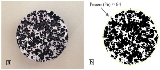 (a) Macrograph of a processed aluminum foam cross-section (at mid-height), (b) binary image of the porous structure (obtained by ImageJ).