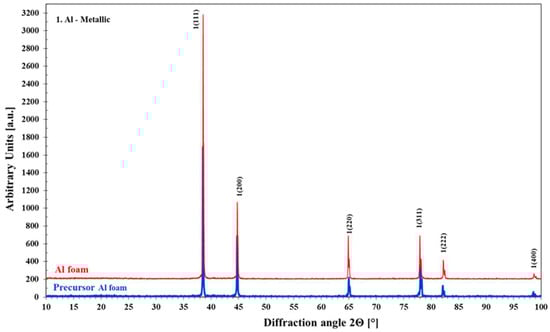 X-ray diffraction pattern for the precursor specimen and Al-foam specimen sintered at 740 °C.