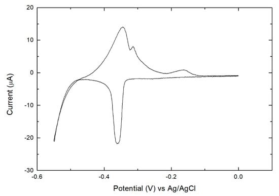 CV of the Bi solution at Ag (111) electrode between 0.0 and −0.55 V at 2 mV/s.