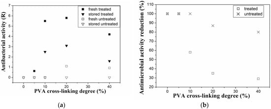 Antibacterial activity (bacteria reduction) was calculated as according to Equation (3)