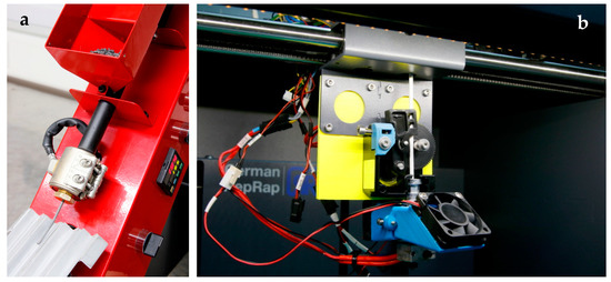 (a) Filament extruder, (b) modified fused filament fabrication (FFF) printer head.