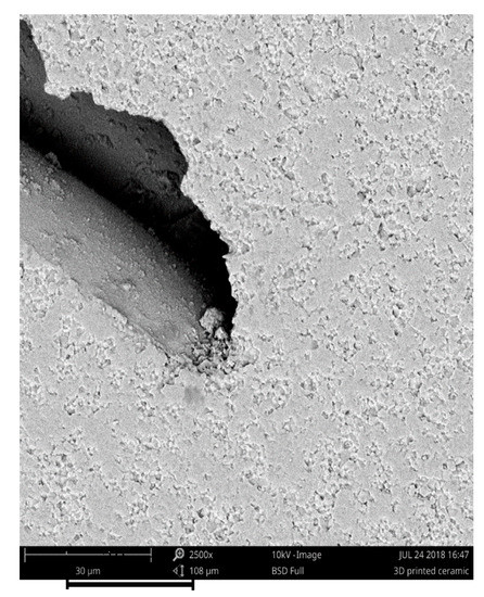 There are already 3D-printing methods of ceramic materials known. Tay et al., Travitzky et al., and Gonzalez-Cutierrez et al. summarize common processes, including stereo lithography, selective laser sintering, laminated object manufacturing, three-dimensional printing, direct ceramic ink-jet printing, and fused filament fabrication [10,11,12].