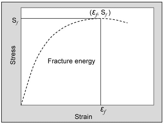 Except for the traditional parameters (RMS and TSR), the change rule of energy parameter was also commonly adopted in moisture stability evaluation [8]. Fracture energy (Ef) can be determined based on the stress–strain curve drawn according to the splitting test raw data as shown in Figure 3, and computed according to Equation (3). The energy parameter of retained energy ratio (RER) under different freeze–thaw damage cycles for each asphalt mixture was determined by Equation (4). The winner of four asphalt mixtures in freeze–thaw damage resistance can be decided by comparing their RER values. The energy method involved the strain and stress of sample simultaneously. It has been reported to be more scientific than traditional RMS and TSR methods, which only consider the change of single stability and strength (stress).