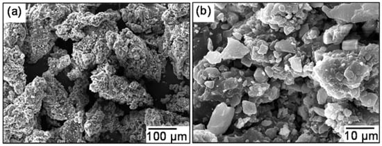 Micro-morphology images of fillers: (a) DGR, (b) LP.