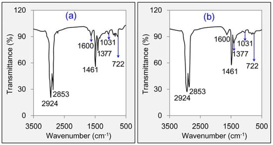 FT-IR analysis results: (a) Base asphalt, (b) RMA.