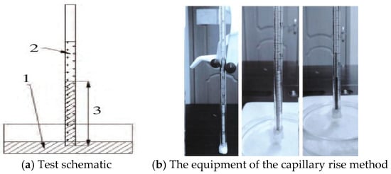 In the formula, h is the liquid rising height, cm; η is the viscosity of the liquid, mN·m−2·s−1; Reff is the effective radius of the capillary, μm; θ is the contact angle between liquid and solid; t is the dipping time, s; γl is the free surface energy of the liquid, mJ·m−1.