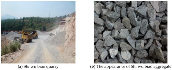 Shi wu biao quarry (a) and stone appearance (b).