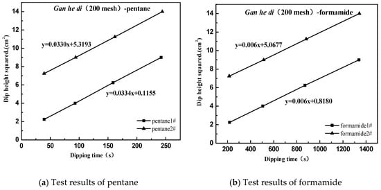 Experiment conditions are described as follows: The environment temperature was 25 °C, the reagent was weighed uniformly to 0.50 g using an analytical balance, the capillary was shaken for 5min after injecting the ore powder, and 0.20 mm thick filter paper was stuck onto the bottom of the capillary. The capillary was a pipette with a length of 20 cm and an internal diameter of 2.7 mm. The surface energy parameters of pentane and the immersion liquid used in the experiment are shown in Table 3.