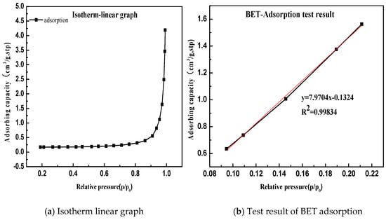 Determination of specific surface area of limestone. (a) Isotherm linear graph; (b) BET adsorption test result.
