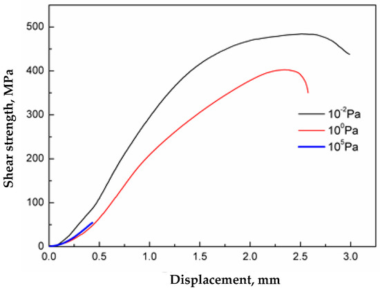 Shear strength-displacement curves of stainless clad steel interface at different vacuum degree.