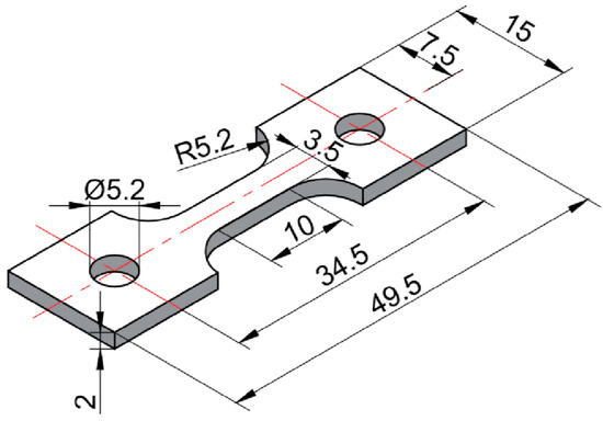 The dimensions of tensile specimens used in this study (unit: mm).