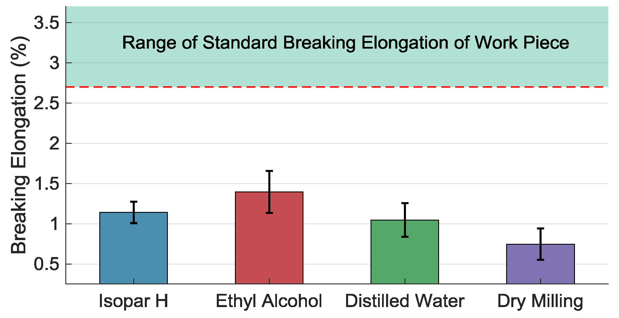 3.3.4. The Effect of the Coolants on Breaking Elongation