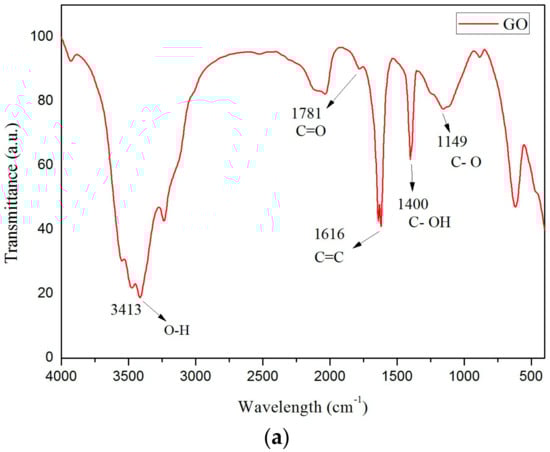 The supercooling degree of modified CaCl2·6H2O is shown in Figure 3a. The cooling curve of the modified CaCl2·6H2O displays a huge difference compared to the control (without GO and SrCl2·6H2O). After the modification, the supercooling degree of CaCl2·6H2O reduced significantly from 25.4 °C to 0.3 °C. Having a reduction of 98.8% supercooling degree, it can be concluded that the binary nucleation agents are super effective to stimulate the crystallization of CaCl2·6H2O, and supercooling is no longer a concern in the modified PCM. The reduction of supercooling degree can be explained by the presence of oxygen-containing functional groups on the surface of GO which have been recognized as a potential platform in crystal attachment due to better wetting and adsorption [16]. According to the FT-IR results, a powerful absorption at 3413 cm−1 due to O–H stretching vibration could be seen in Figure 4a. C=O stretching was also observed at 1781 cm−1, and the absorption around 1400 cm−1 was attributed to the tertiary C–OH groups. The peak occurred at 1149 cm−1 was stretching vibrations of C–O [17,18]. These functional groups indicated the oxidation process of GO was in place. Besides, as shown in Figure 4b, the GO sheet can be characterized as nano-scale thin with large surface area for the attachment of oxygen functional groups. Thus, better dispersion of GO by means of ultra-sonication can effectively modify CaCl2·6H2O [19]. Besides, Figure 3b shows the DSC results of modified CaCl2·6H2O. According the provisions of the International Confederation for Thermal Analysis (ICTA) standardization committee, the intersection of the front extension baseline and the maximum frontier slope of the peak represents the melting point, and the area of the peak represents the latent heat. Hence, the latent heat of modified CaCl2·6H2O was around 207.88 J/g, which is higher than those reported in other studies (170 J/g and 191 J/g) [20]. The phase change temperature was 27.6 °C, which is within the operational temperature and suitable for building applications.