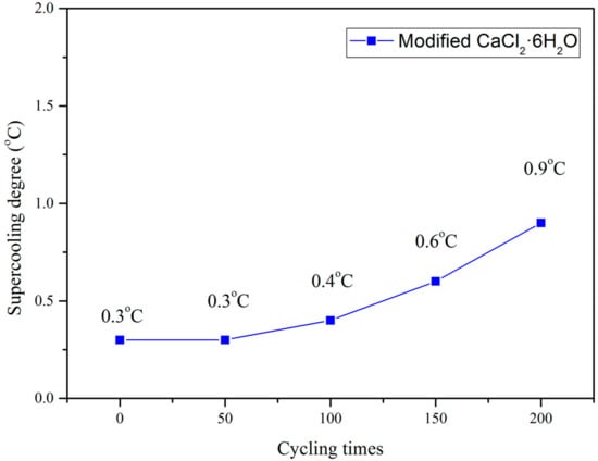 Supercooling degree of modified CaCl2·6H2O underwent different thermal cycles.