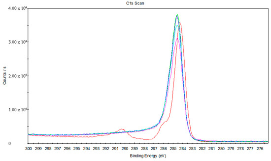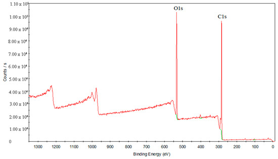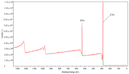To study the laser transmission joining mechanism in depth, XPS analysis was used to study the interface analysis of the chemical composition and chemical bond state before and after treatments. Figure 12 presents the elements’ full spectrum diagram of the PS surface. C and O elements are detected in this area. Figure 13 shows the element’s full spectrum diagram of the oxygen plasma-treated PS surface. The results show that the O element significantly increases after the treatment with oxygen plasma, even exceeding the content of the C element.