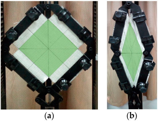 The fabric samples were fixed in the frame under zero tension, because zero pre-tension eliminated the tension–shear coupling and gave the most accurate response [33].