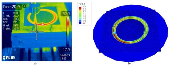 Temperature for a PVC sheet: (a) Example of experimental temperature measurements; (b) numerical temperature estimation.