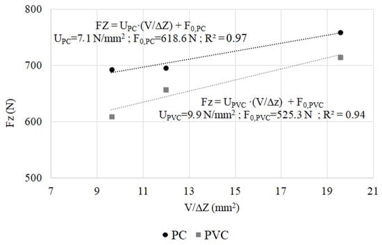 where U is the specific forming energy and F0 is the minimum forming force. For each of the tested polymers, different values of the specific forming force and the minimum force were obtained.