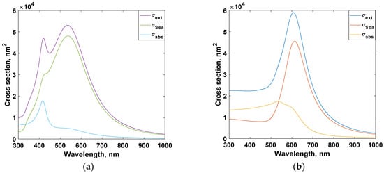 Cross sections of (a) Au, and (b) Ag plasmonic nanoparticles (NPs).
