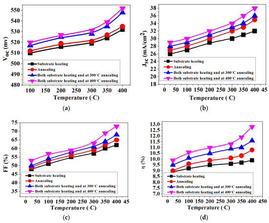 3.5. The Effects of Heating Modes and Temperature on CIGS Solar Cell