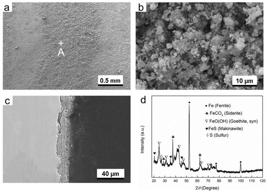 - Gao, S.; Brown, B.; Young, D.; Singer, M. Formation of iron oxide and iron sulfide at high temperature and their effects on corrosion. Corros. Sci. 2018, 135, 167–176. [Google Scholar] [CrossRef]