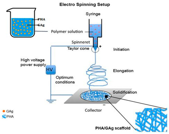 Schematic diagram of electro spinning PHA/GAg scaffold.