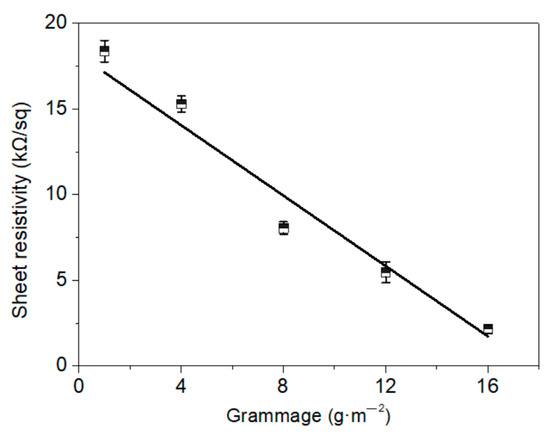 Sheet resistivity of the 16 g·m−2 membranes with different amounts of graphene.