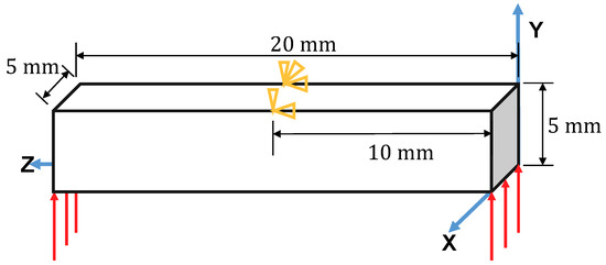 The multiscale finite element method mentioned above has been validated by the reference and shows good ability in modeling the superelasticity and the shape memory effect of the SMA composites [39]. Therefore, this multiscale model is used to simulate the multiscale response of the architected SMA structure herein. A 3D beam subjected to three-point bending load is shown in Figure 13.