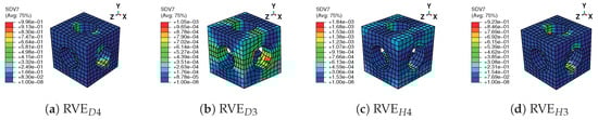 Generally speaking, the mesh with 720 C3D8R elements has relatively enough accuracy and lower computational cost than other meshes. Thus, meshes like density and C3D8R elements are used for the RVE in the following work.