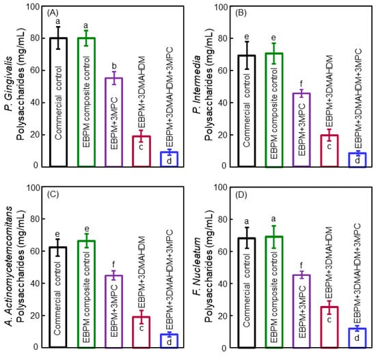 - Beyth, N.; Yudovin-Farber, I.; Bahir, R.; Domb, A.J.; Weiss, E.I. Antibacterial activity of dental composites containing quaternary ammonium polyethylenimine nanoparticles against Streptococcus mutans. Biomaterials 2006, 27, 3995–4002. [Google Scholar] [CrossRef] [PubMed]